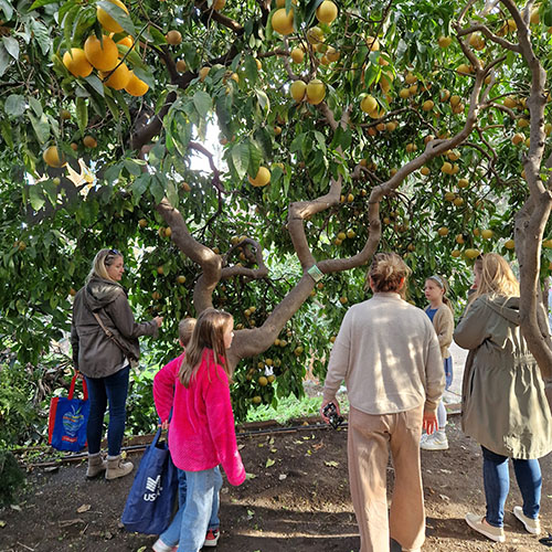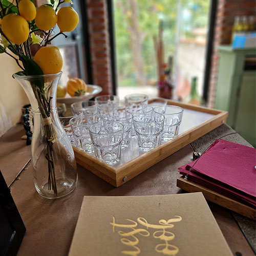 The experience we share includes a welcome drink (fresh season fruit juices), a guided visit of the farm, both of the flower garden and the vegetable garden as well the lemon groves, with explanations at different levels, from the soil to the molecular content.